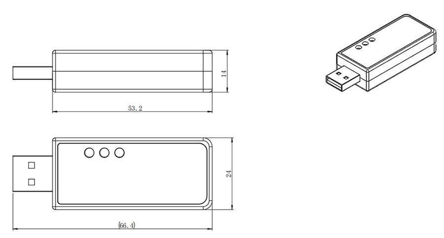 USB信号采集模块H01CAMU采用超紧凑设计(66×24×14mm),轻便耐用。支持USB直连供电与单通道通信,即插即用,为便携式测量提供高集成度解决方案。